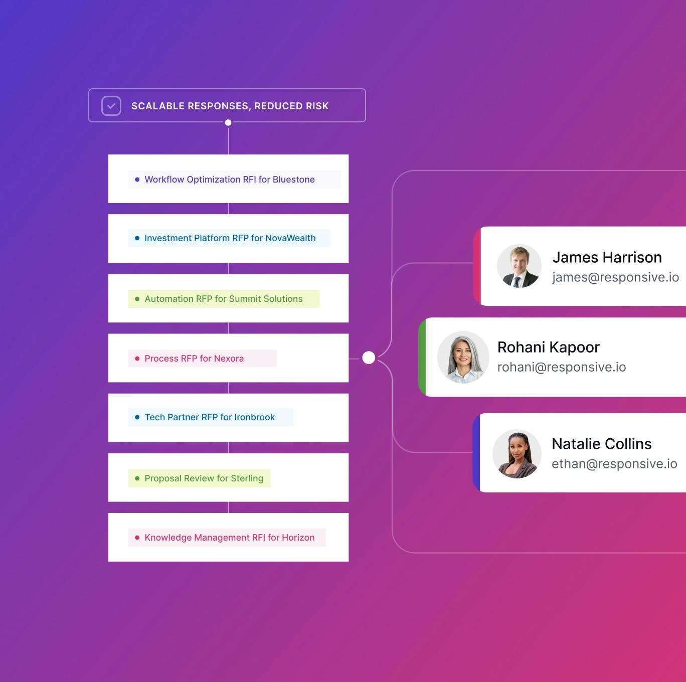 Overcome your ever-increasing volume of information requests to respond 80% faster, seamlessly engage subject matter experts for proposals and content updates, and win more deals with an AI-driven platform that adapts to your growth.