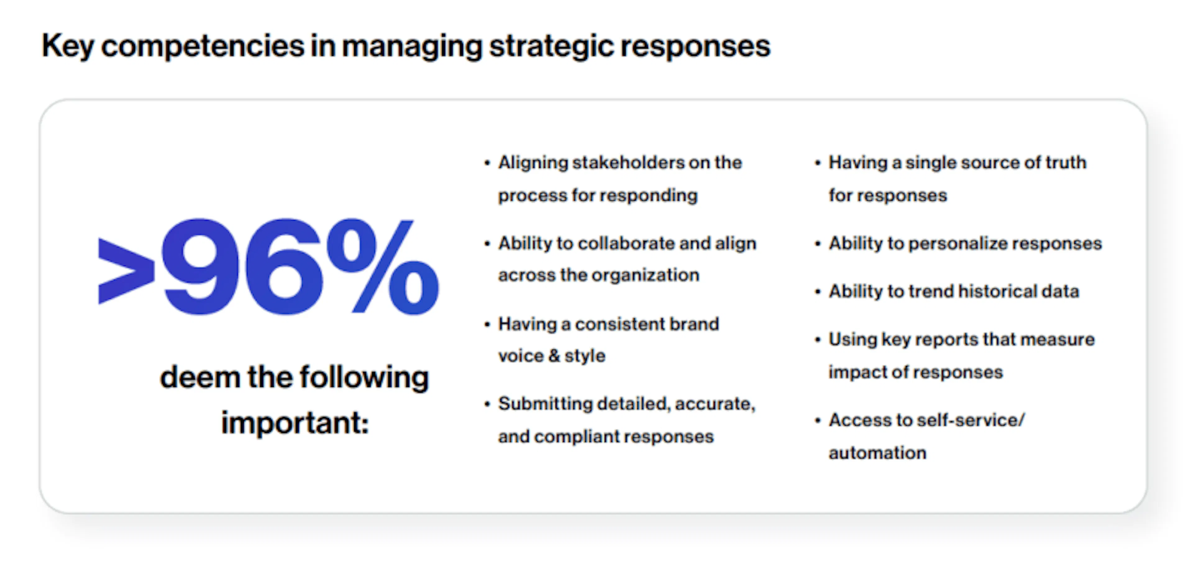 Without further ado, let’s dive into the Strategic Response Management trends and data surfaced in the research. We’ll reveal what leading organizations are doing to stay ahead of buyer trends to deliver compelling responses and proposals that more business.