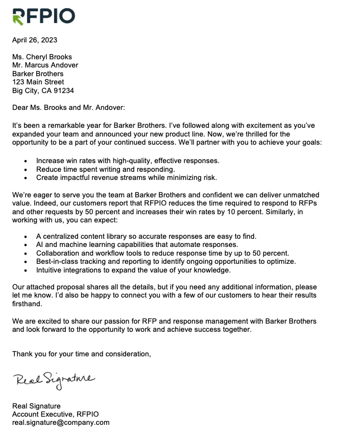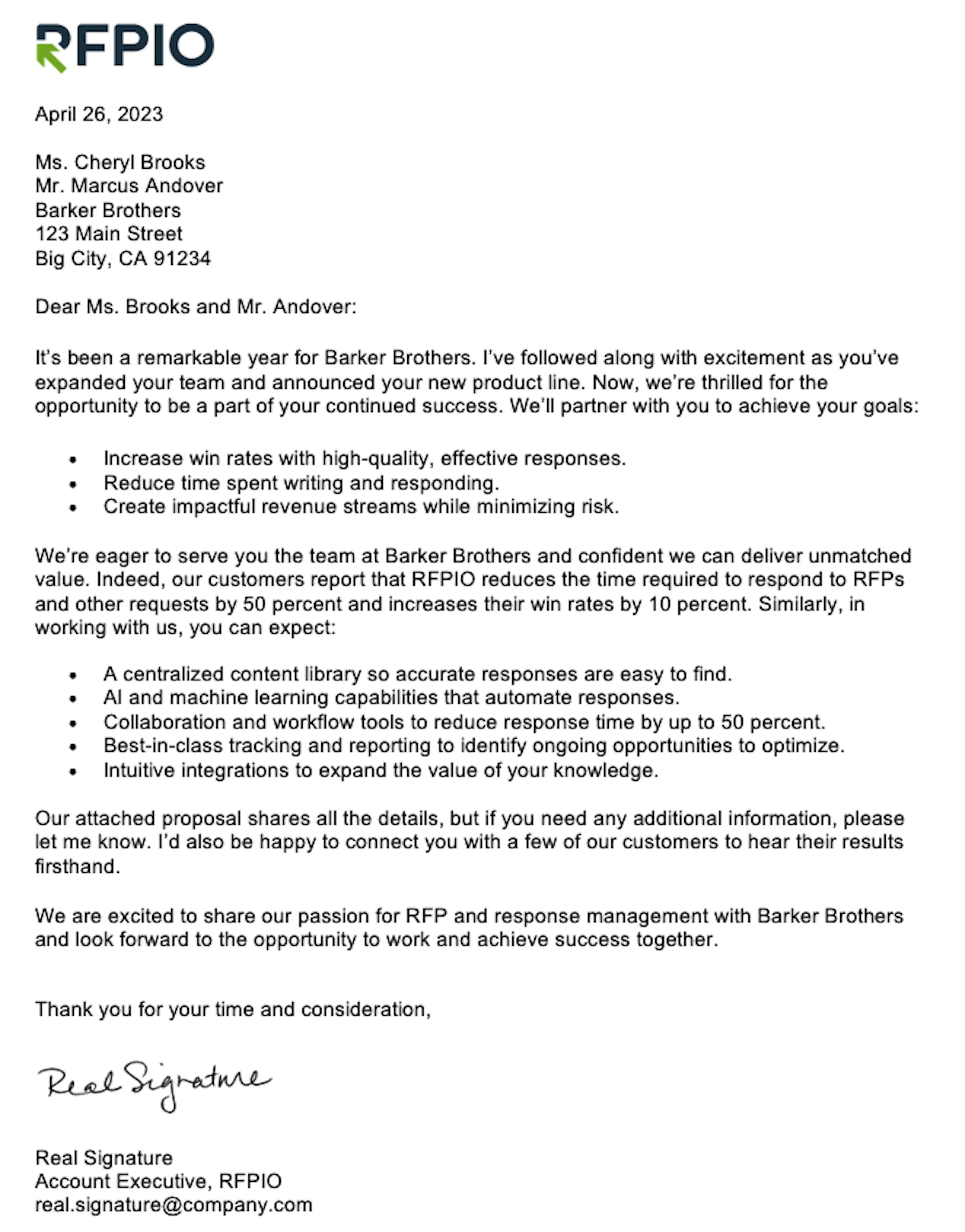 More info: For additional advice and a step-by-step guide, read our RFP cover letter blog.