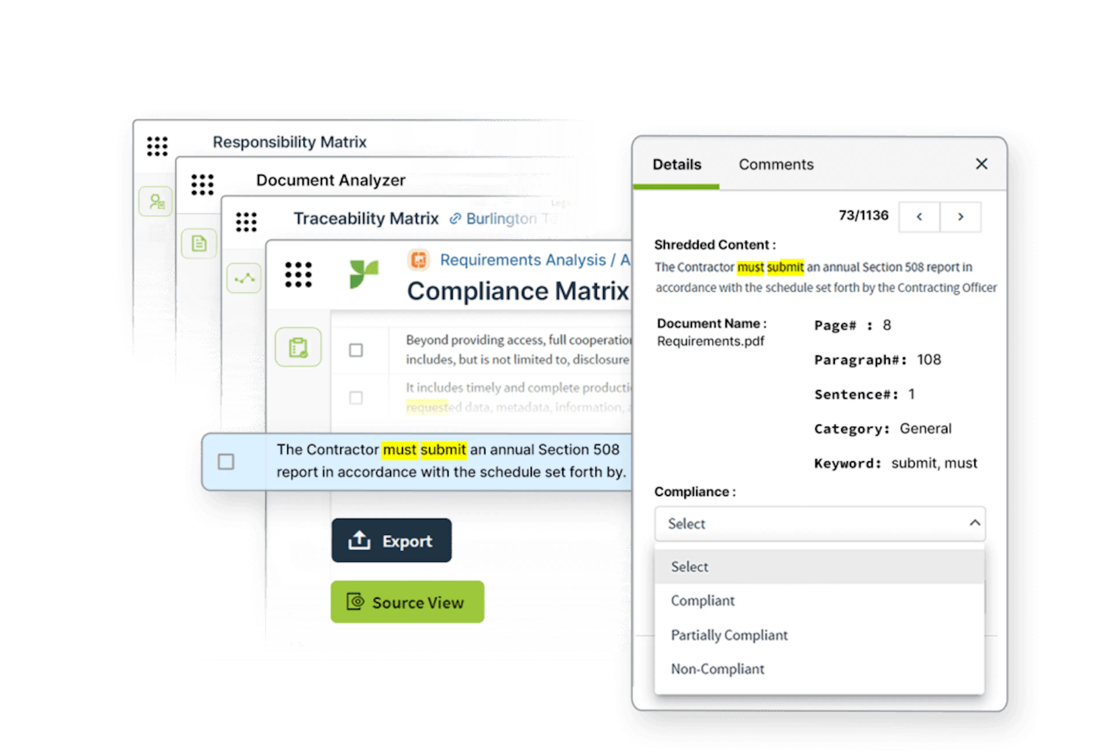 - Requirements Analysis shreds RFPs so response teams can quickly determine whether they can submit a winnable bid.