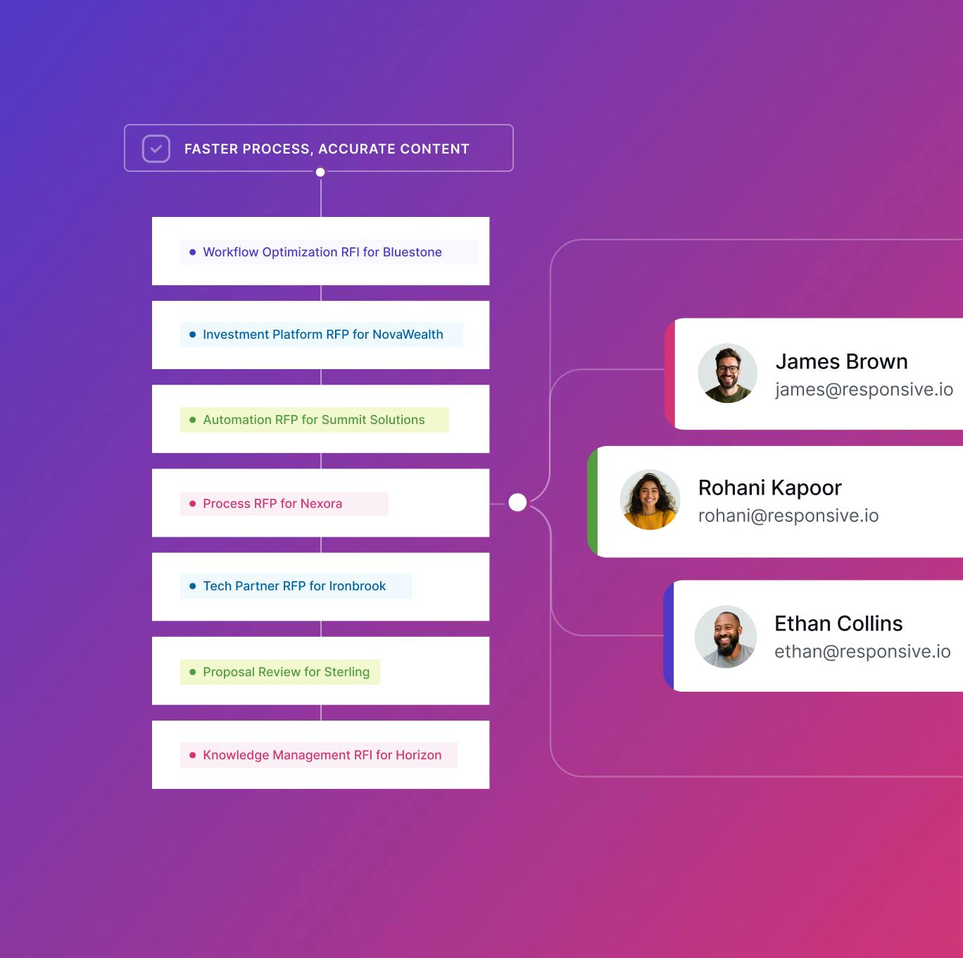 Increase productivity and work more efficiently with AI-powered workflow management. Auto-select SMEs, complete sequential reviews, and power self-service access to proposal-ready content.